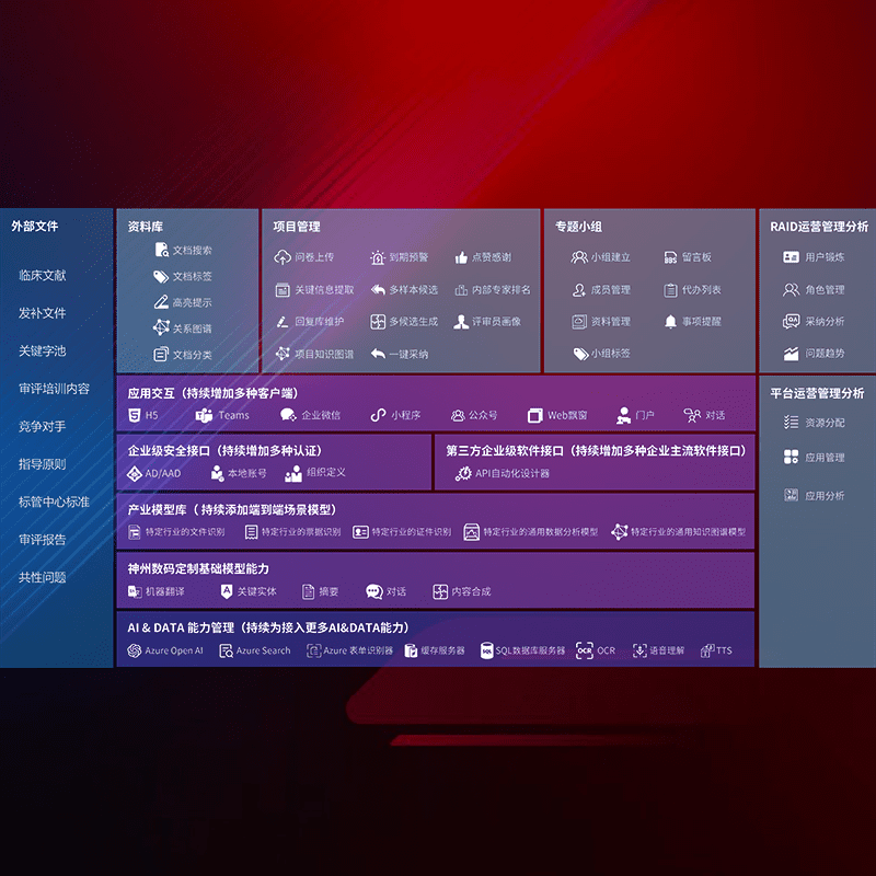 医疗器械产品上市前,,要熟悉严格与繁复评审标准,,,,整理分析监管机构指导文件中的海量信息。。企业急需一个智能化解决方案,,,提升知识管理效率,,,,提高评审通过率,,,以提升其市场竞争力。。。。
